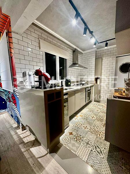 ✅ Geladeira/freezer, cooktop, forno elétrico e coifa em aço escovado
