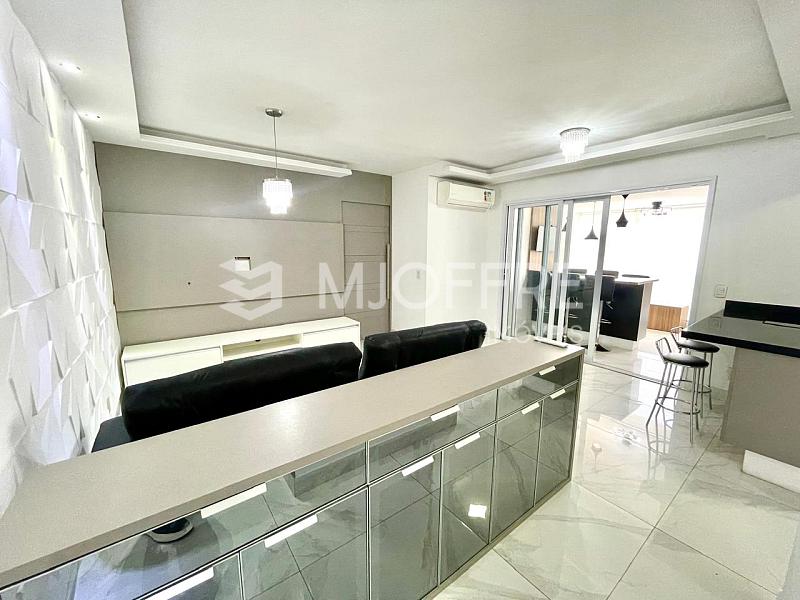 Este excelente apartamento de 100m² oferece conforto, espaço e praticidade em um dos melhores pontos da região. São 2 dormitórios, sendo 1 suíte, além de 3 banheiros, ideal para quem busca funcionalidade e qualidade de vida. O imóvel está totalmente mobiliado, com ambientes bem distribuídos, closet, varanda, home office, ar-condicionado e armários planejados nos quartos, banheiros e cozinha.