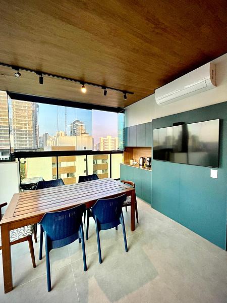 • Cobertura duplex totalmente mobiliada, com acabamento refinado e ambientes integrados.